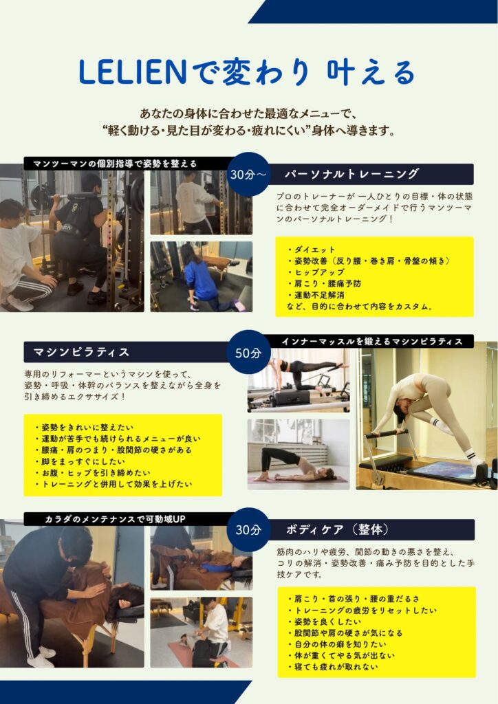 パーソナルトレーニング(整体×トレーニング)できるのがLELIENの強み!